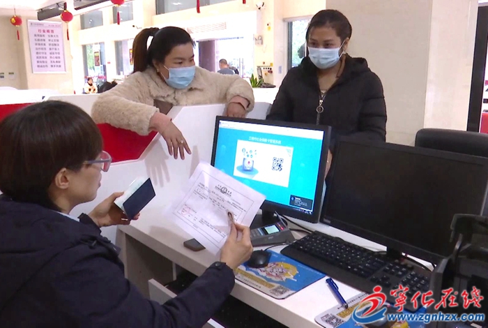 記者走進(jìn)寧化縣南大街農(nóng)村信用合作聯(lián)社營業(yè)部,看到工作人員正耐心地為換卡居民辦理相關(guān)業(yè)務(wù)。