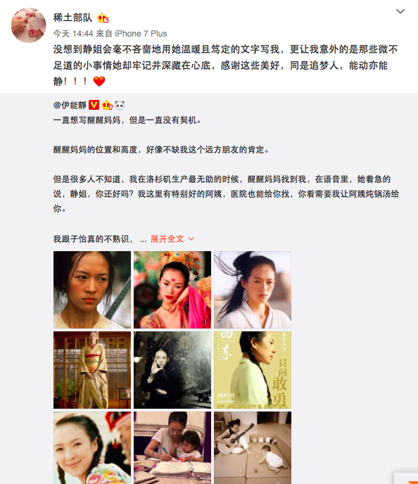 對此,章子怡轉(zhuǎn)發(fā)并回復(fù)道“沒想到靜姐會毫不吝嗇地用她溫暖且篤定的文字寫我,更讓我意外的是那些微不足道的小事情她卻牢記并深藏在心底,感謝這些美好,同是追夢人,能動亦能靜!!!”