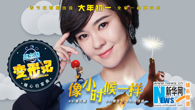 歌曲《像小時候一樣》,是郁可唯首次為動畫電影獻唱,并由曾創作過《唱得響亮》、《筆記》等熱門單曲的知名作詞人唐恬進行填詞。此前,郁可唯多是為真人影視作品獻唱,此次選擇《熊出沒·變形記》作為第一次與動畫電影的合作嘗試,郁可唯坦言到,自己本身就很喜歡小朋友,“很早就想參與到好看的動畫電影,這次得到邀請,(來唱)是義不容辭的。”這首“歸家曲”情感細膩,在春節前夕為踏上歸途的人送去濃濃暖意。