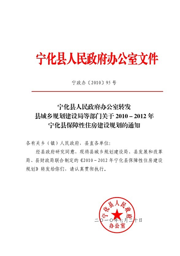 2010-2012年寧化縣保障性住房建設規劃的通知