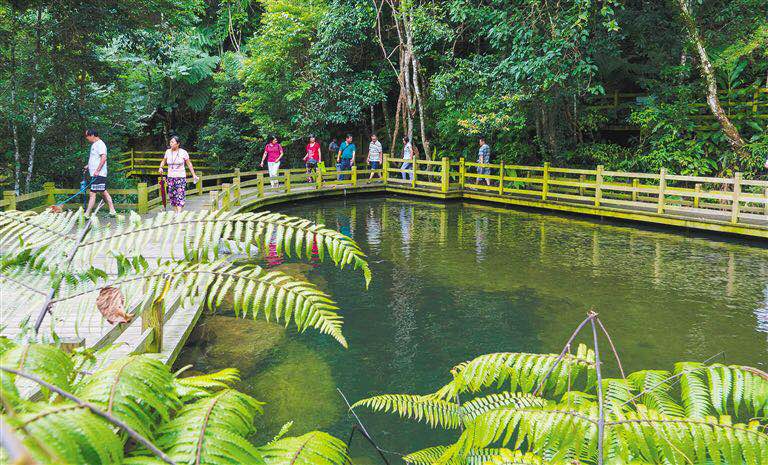 在這里,人們可以掃去心中煩憂,穿越雨林棧道,呼吸清新空氣,暢享快樂時光。在這里,百年古藤、千年古蕨、巨大的仙草靈芝、“冷血殺手”見血封喉以及熱帶雨林的六大奇觀等,讓人們不虛此行……(記者 郭暢)